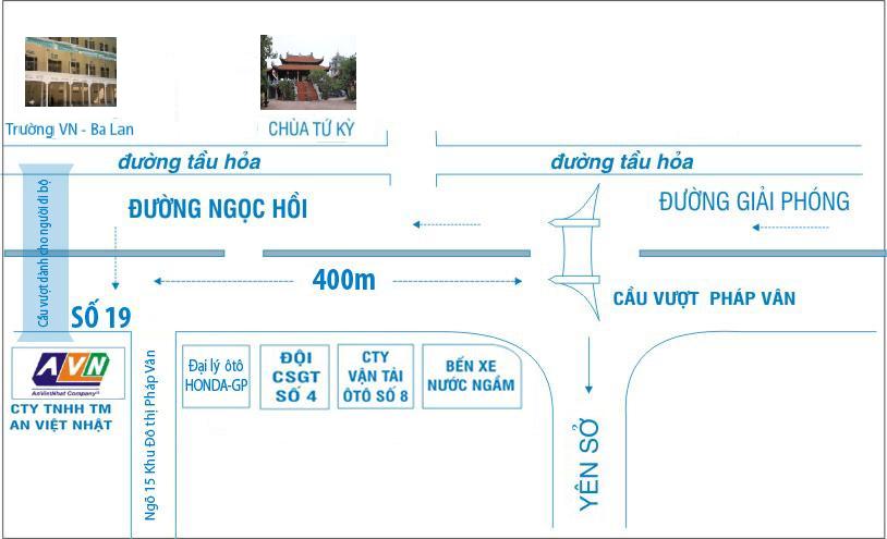 Công ty TNHH Thương Mại An Việt Nhật - Địa chỉ : Số 19 Đường Ngọc Hồi - Phường Hoàng Liệt - Quận Hoàng Mai - Thành phố Hà Nội